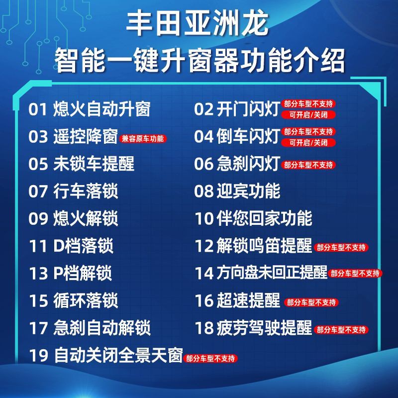 忠诚卫士适用24款 汉兰达车载自动升窗器锁车一键升降关窗落锁改装