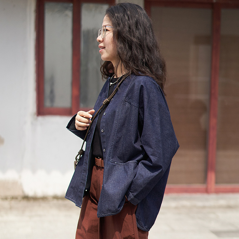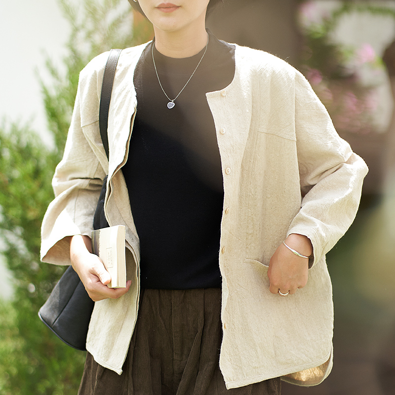 宽松棉麻开衫 简约气质显瘦长袖 上衣短外套 女2025新款 柒白秋装