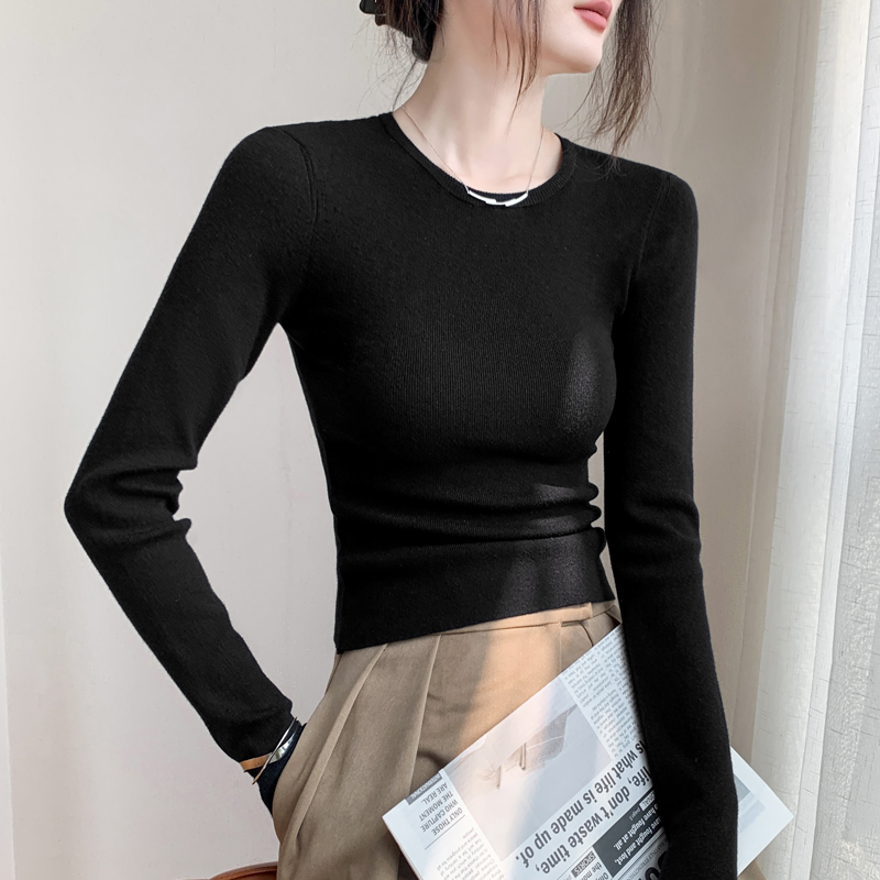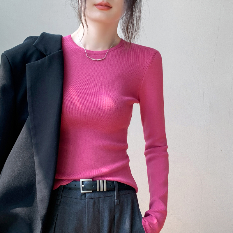 显瘦T恤上衣纯色正肩内搭打底衫 修身 长袖 圆领针织毛衣女秋冬新款
