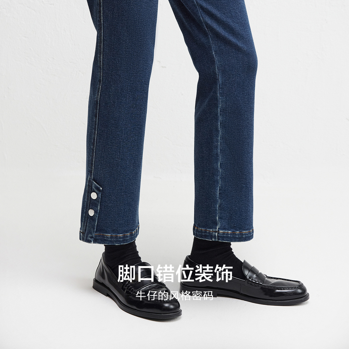 八九分直筒小个子加绒裤 窄版 女秋冬高腰显瘦修身 复古蓝烟管牛仔裤