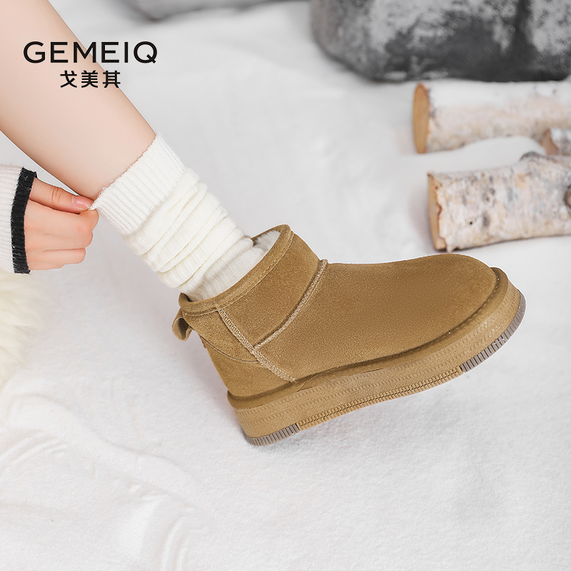 保暖厚底套筒棉鞋 冬季 真皮短靴 2024新款 戈美其皮毛一体雪地靴女款