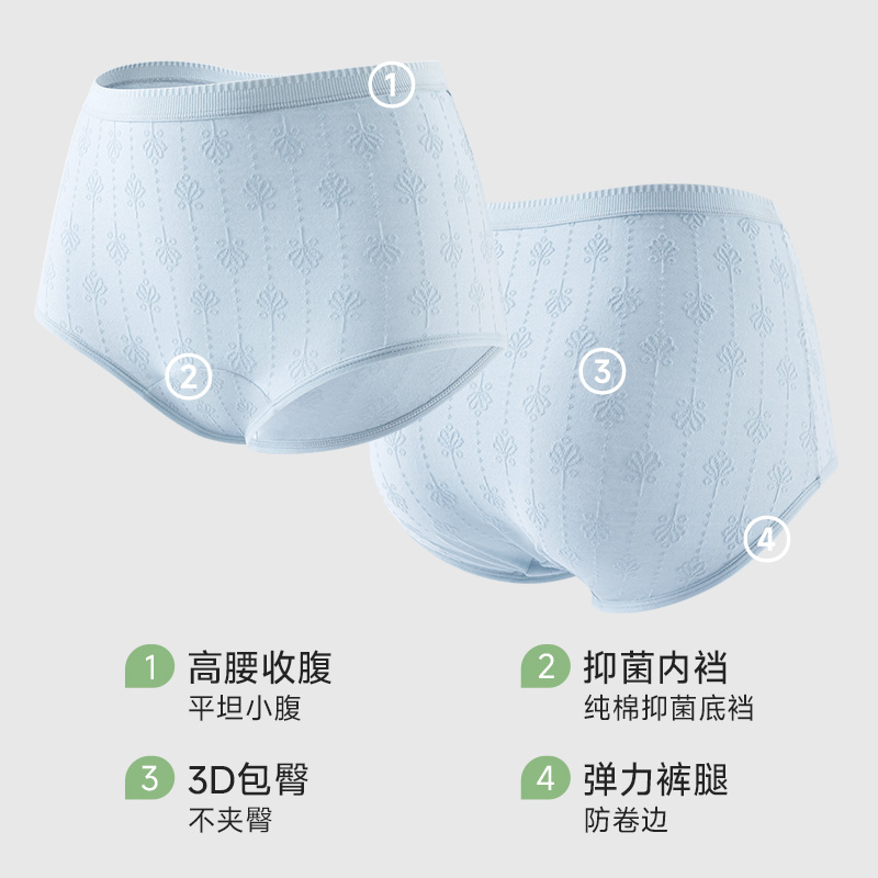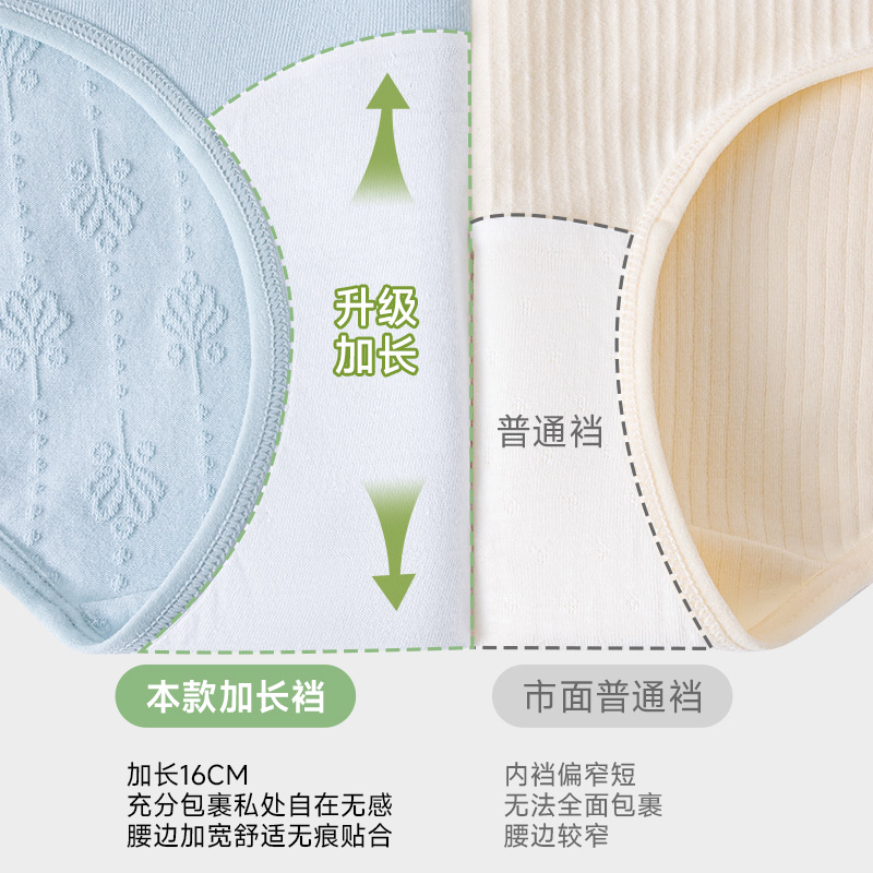 2025新款 草本初色纯棉平角四角内裤 女抑菌加长裆中腰不夹臀三角裤
