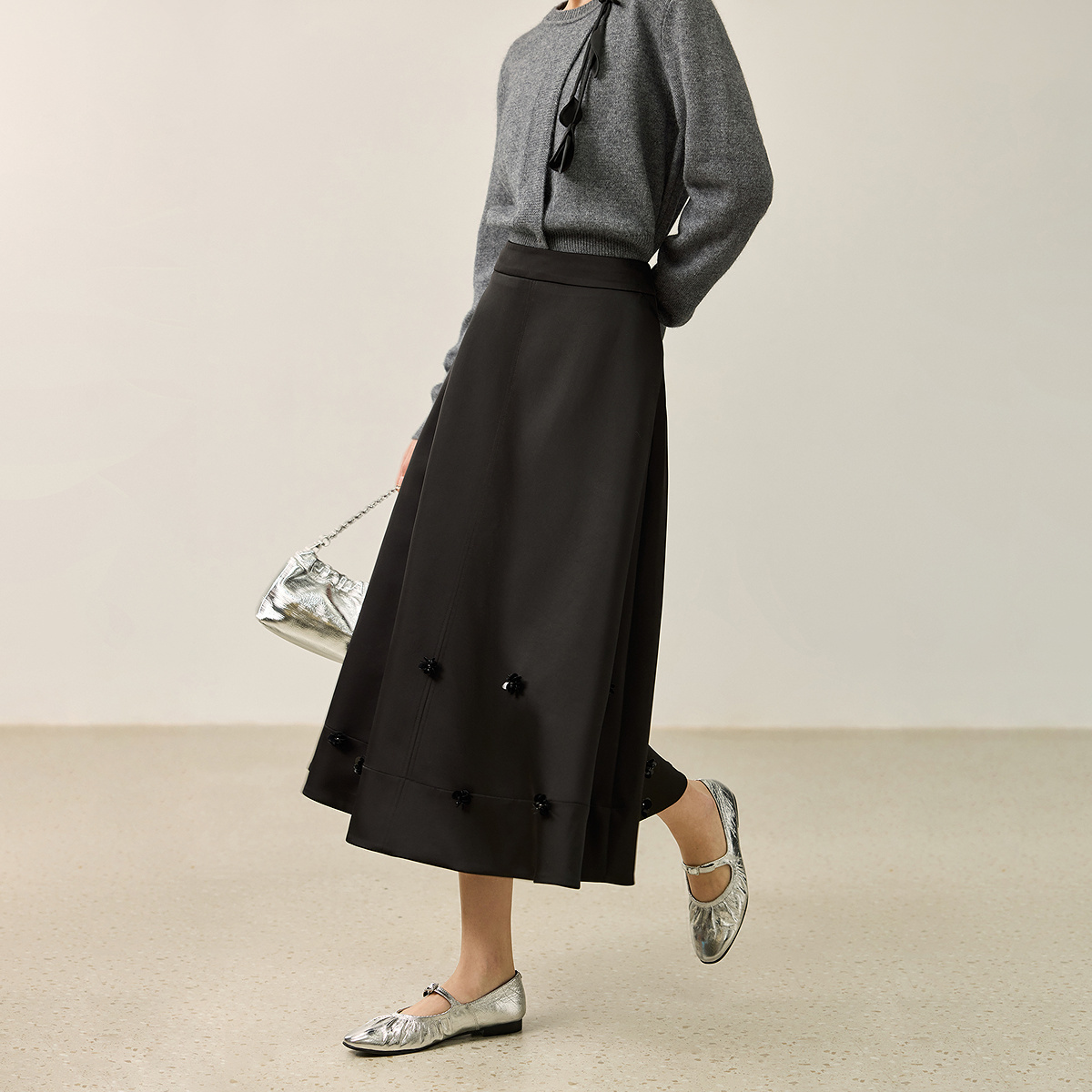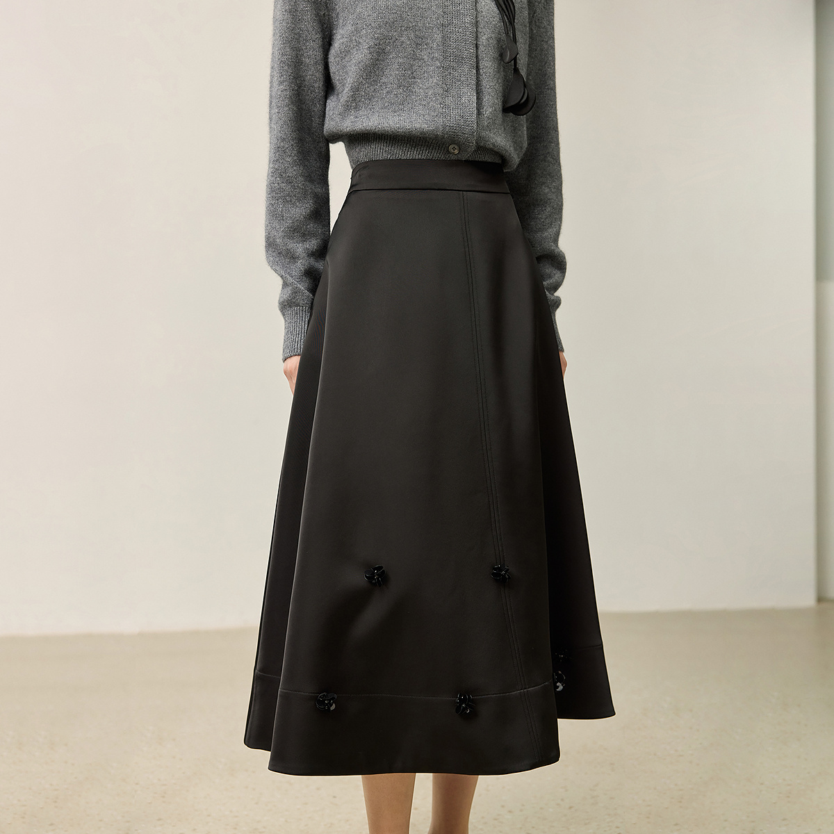 大摆伞裙高级秋冬新品 OCHIRLY欧时力 立体褶裥a字半身裙中长款