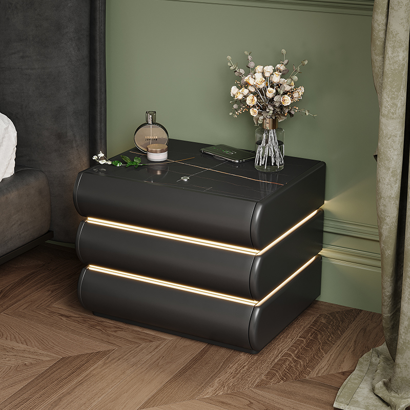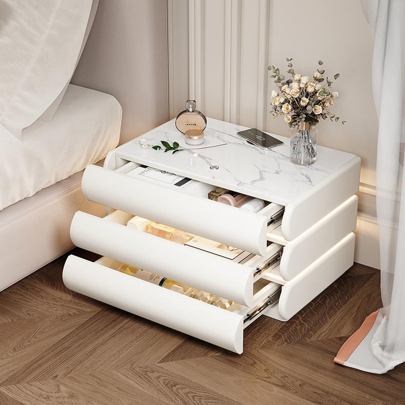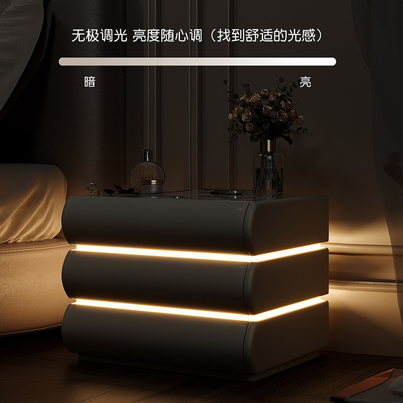白色床头柜奶油风卧室智能氛围灯猫爪皮收纳柜无线充电三抽床边柜