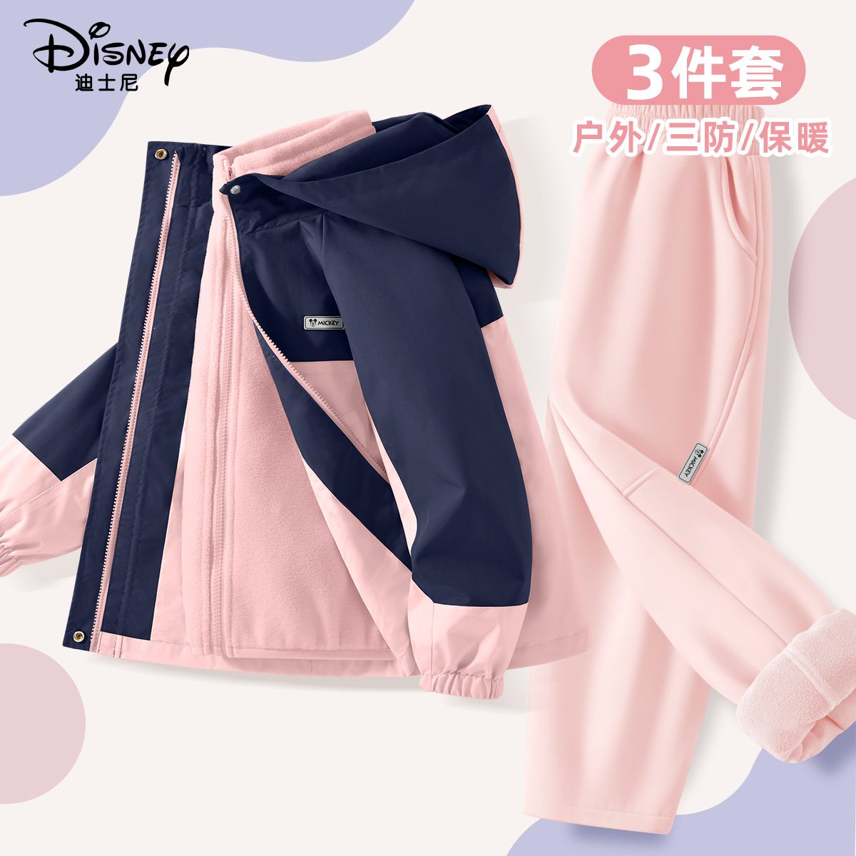 儿童冬装 迪士尼女童冲锋衣套装 裤 加绒保暖女大童工装 秋冬2025新款