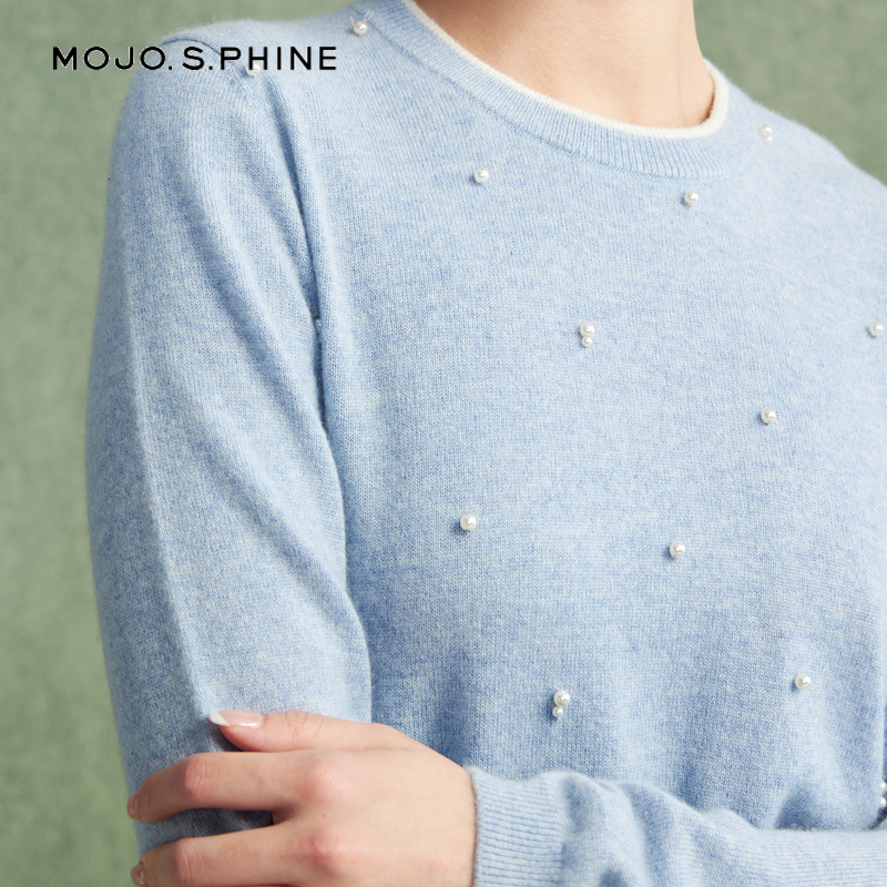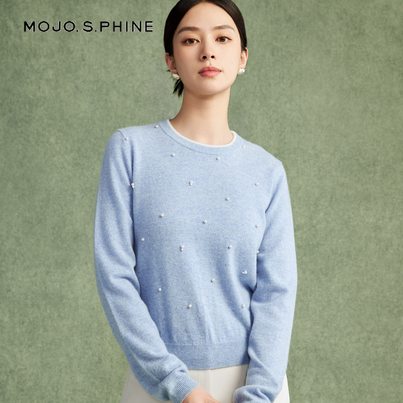 女 优雅圆领套头衫 MOJO莫佐温柔浪漫羊绒针织衫 2024年秋冬柔软时尚
