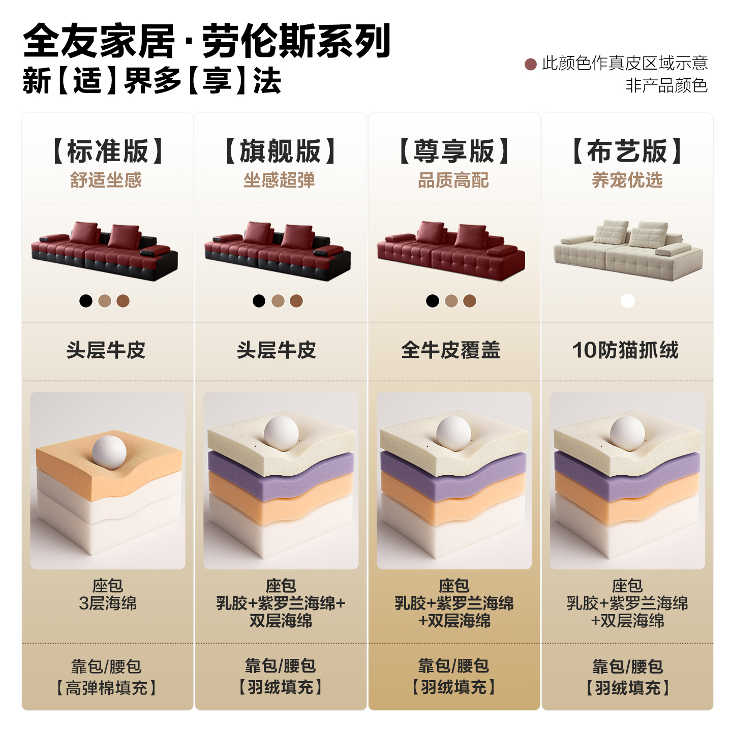 政府补贴全友家居意式 极简客厅家居直排劳伦斯沙发大黑牛真皮沙发
