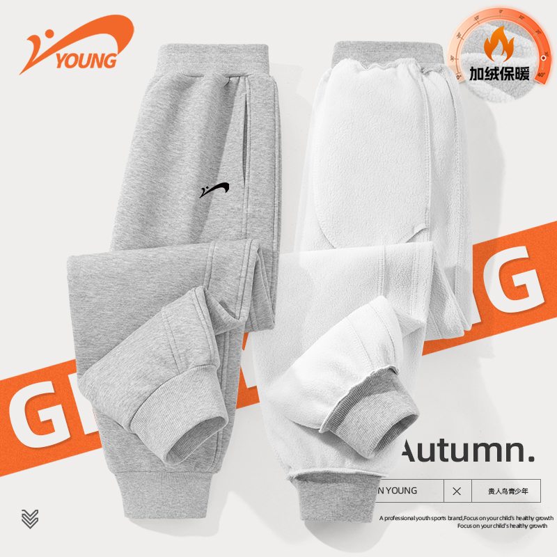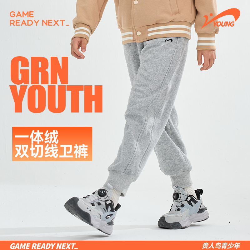 男童裤 青少年加厚长裤 子冬季 儿童黑色加绒卫裤 2025新款 贵人鸟童装