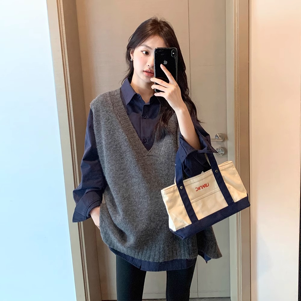 宽松休闲显瘦针织V领坎肩背心马甲 韩版 孕妇上衣春秋冬季 2025新款
