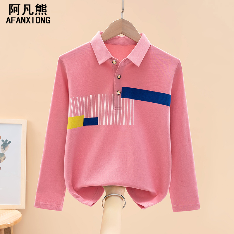T恤痞帅上衣翻领polo衫 儿童纯棉长袖 秋装 2025新款 男孩 t恤男童薄款
