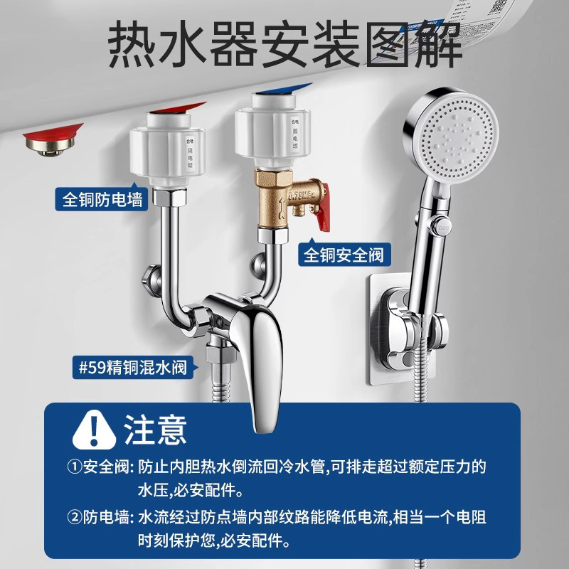 电热水器U型混水阀 配件配大全冷热水龙头淋浴花洒分合三通开关