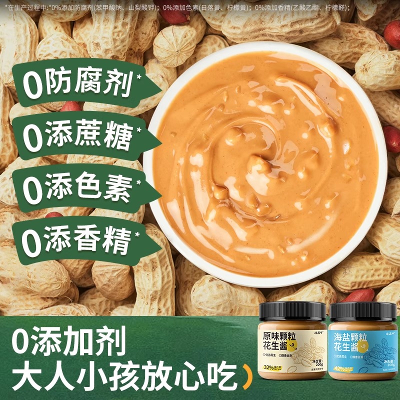 0添加纯正花生酱颗粒低0无糖精海盐脂肪卡拌面健身抹面包酱料麻酱