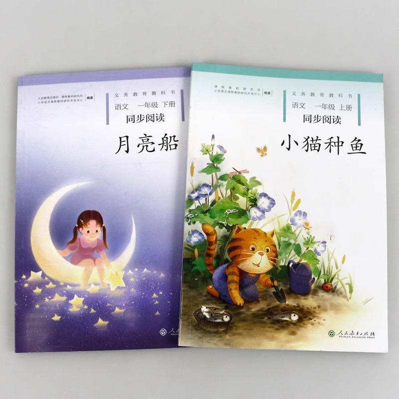 小学语文自读课本1一年级上下册同步扩展阅读课外阅读故事书 全套2本人教版 月亮船 小猫种鱼一年级上下册语文同步阅读注音版