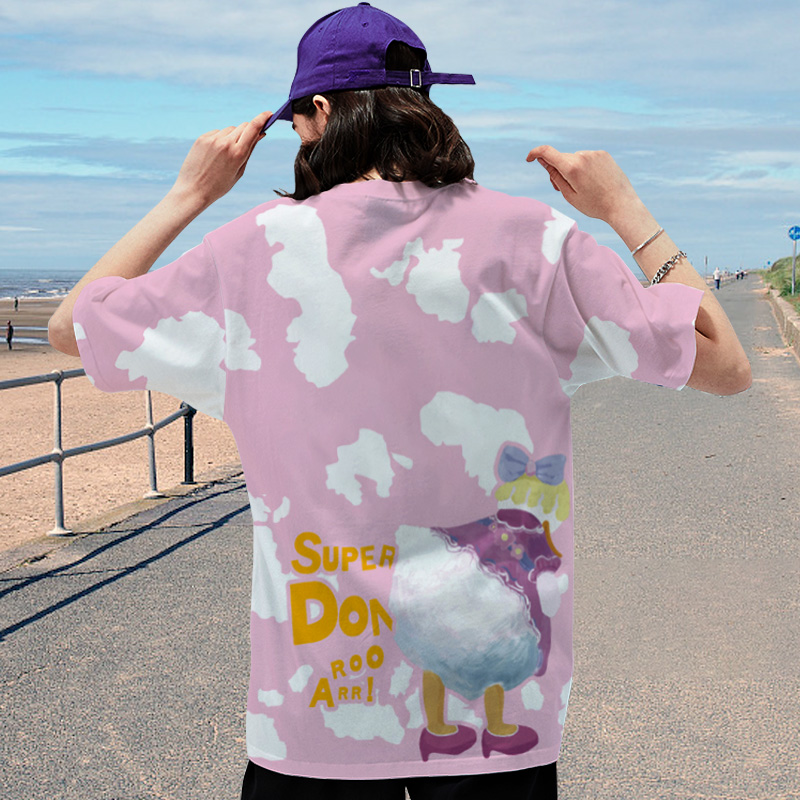 ins潮牌休闲体恤 加肥落肩半截袖 唐老鸭t恤oversize情侣短袖 男大码