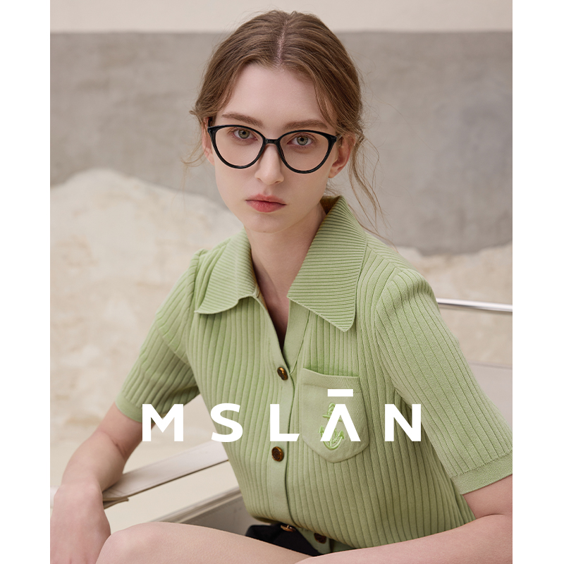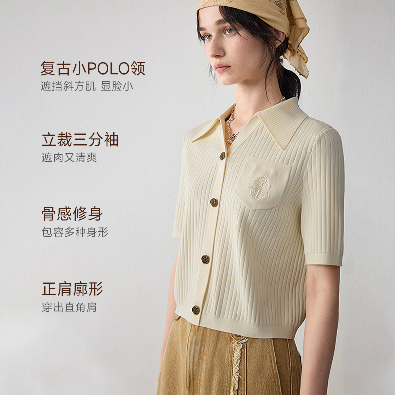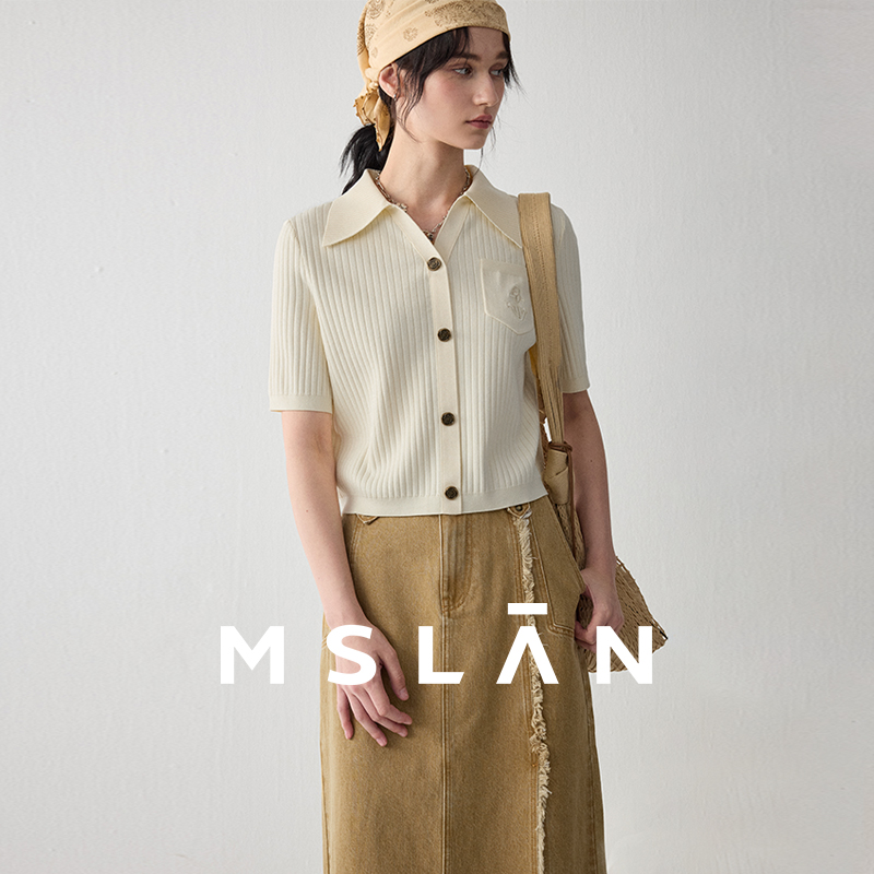 MFBE2302 显瘦弹力针织衫 自带凉感 MSLAN春夏气质小个子翻领短袖