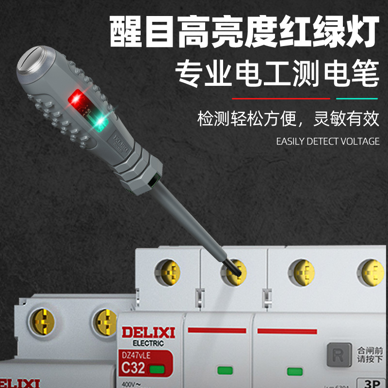 德力西电气电笔电工专用测断线感应验电试电笔高扭力螺丝刀测电笔