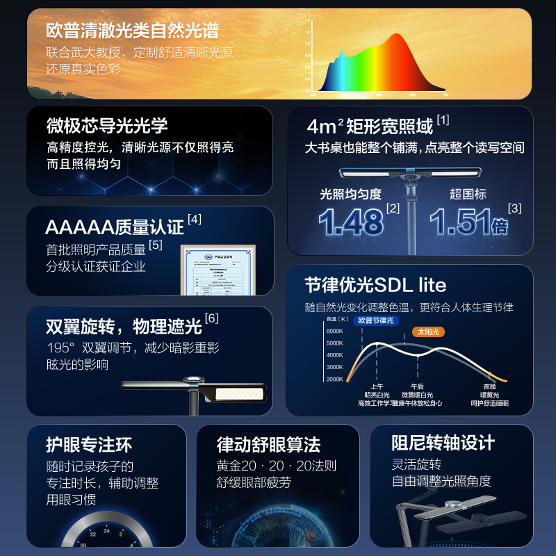 欧普清澈光全光谱护眼灯书桌台灯学生儿童房阅读学习读写小灯塔