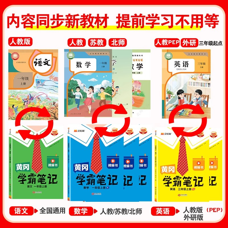 2025黄冈学霸笔记一二三年级上册四五六下册语文数学英语人教版 同步教材全解解读析课前预习复习课堂随堂笔记启明星 苏教北师外研版