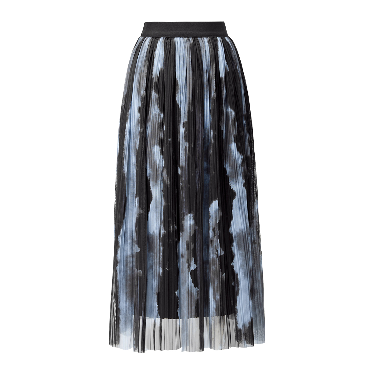 颜域复古高腰半身裙女2025新款 裙子 早春水墨印花A字裙气质中长款