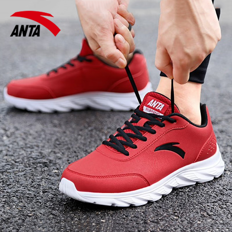 夏季 2025新款 男款 网鞋 子 安踏皮面男鞋 旗舰店休闲跑步鞋 红色运动鞋