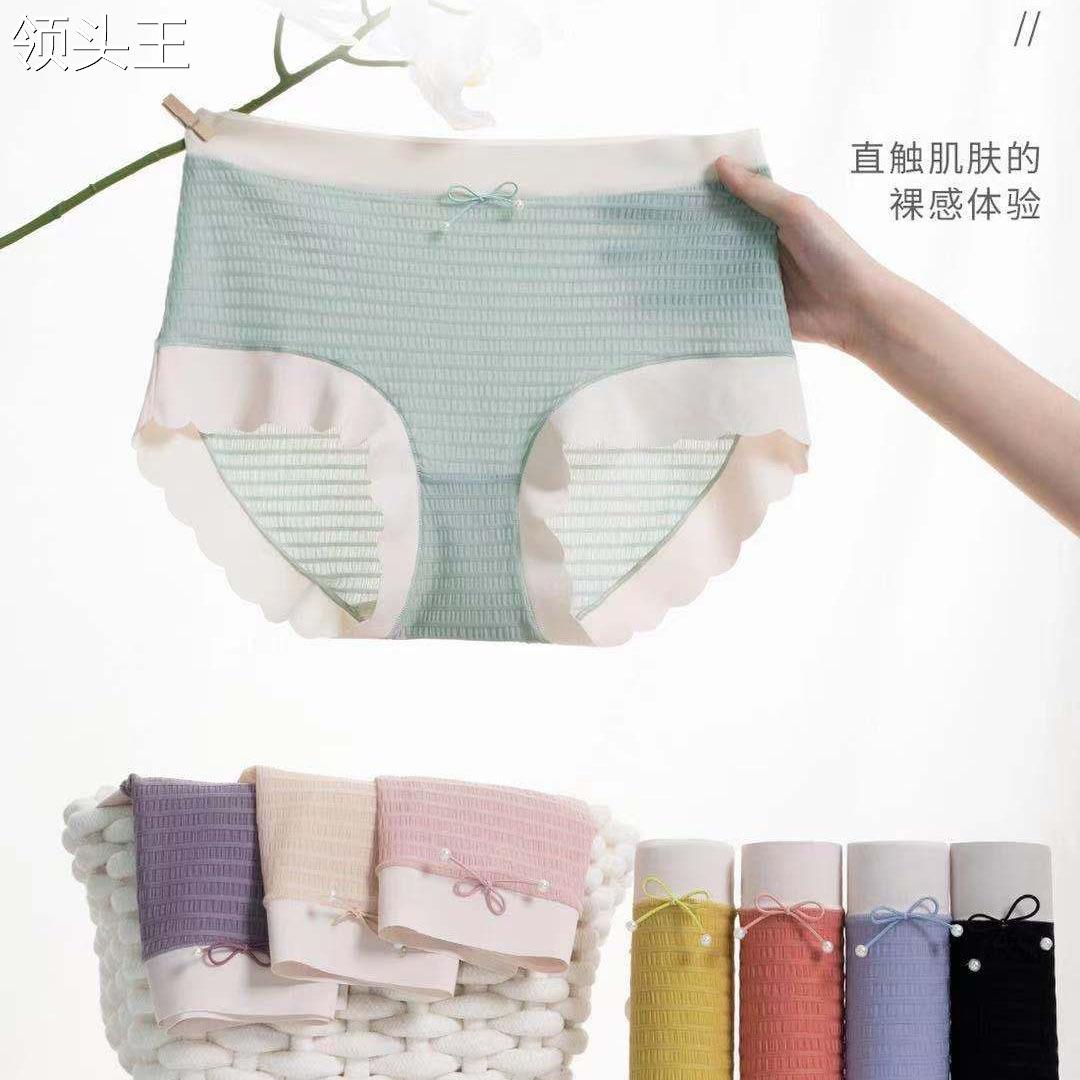 大码 无痕透气亲肤薄真丝莫代尔三角裤 女 蕉内银皮500E女士内裤 3件