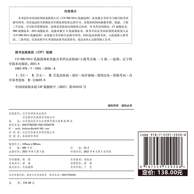 董毅 社 DSA 辽宁科学技术出版 成像技术书9787559129208 等主编医学影像技术学 王骏 第二版 乳腺技师业务能力考评应试指南