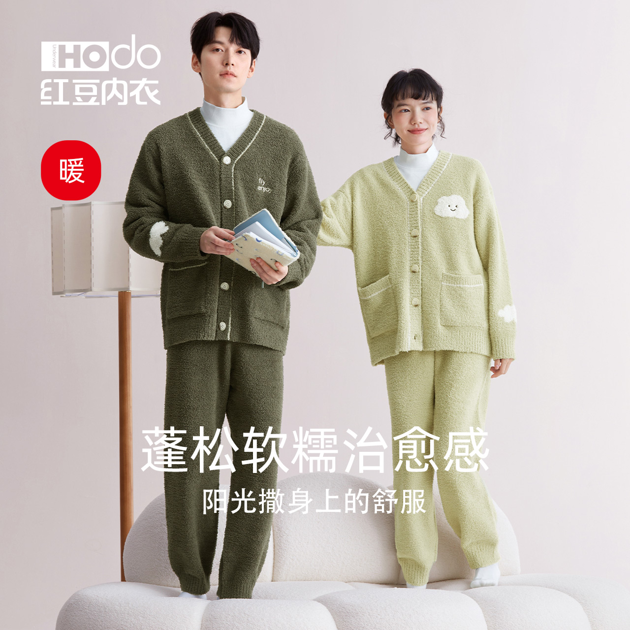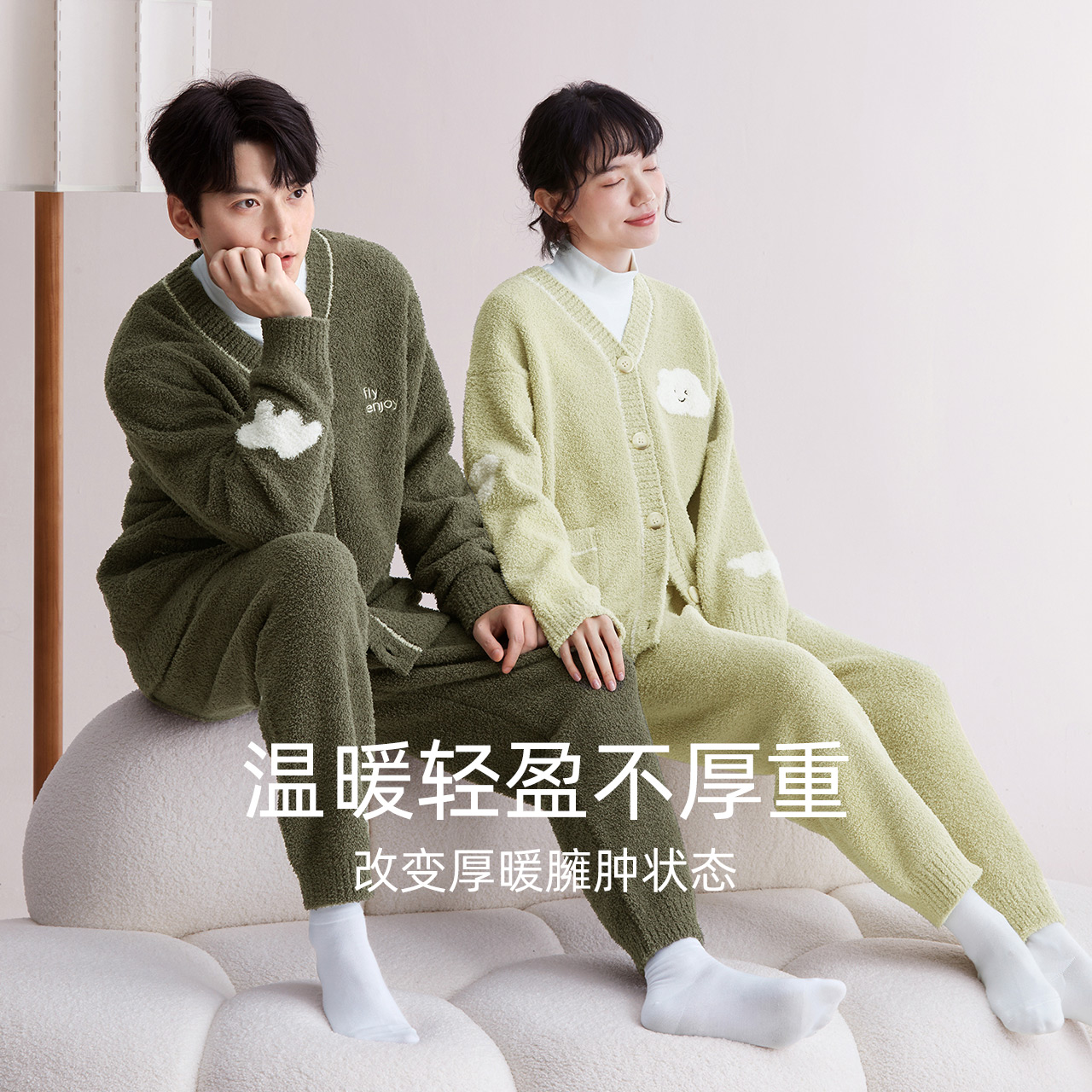 海岛绒可外穿家居服 简约薄款 睡衣女秋冬季 保暖珊瑚绒女士睡衣套装
