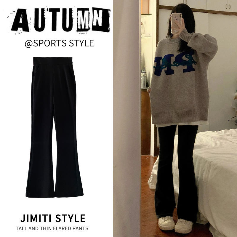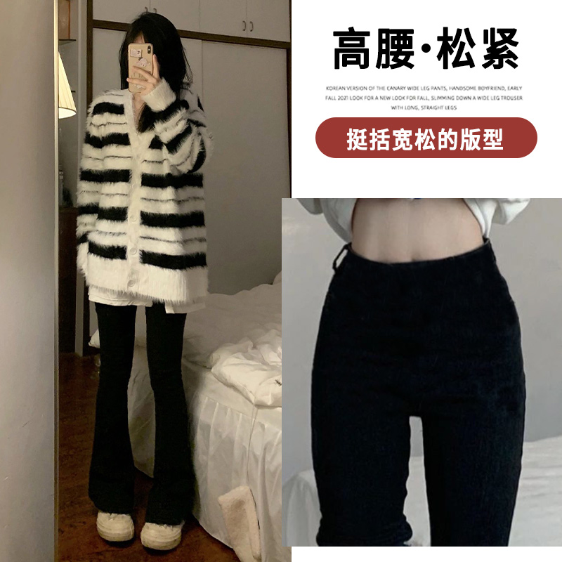小个子休闲裤 高腰显瘦加绒微喇叭裤 子 女春秋冬2025新款 黑色马蹄裤