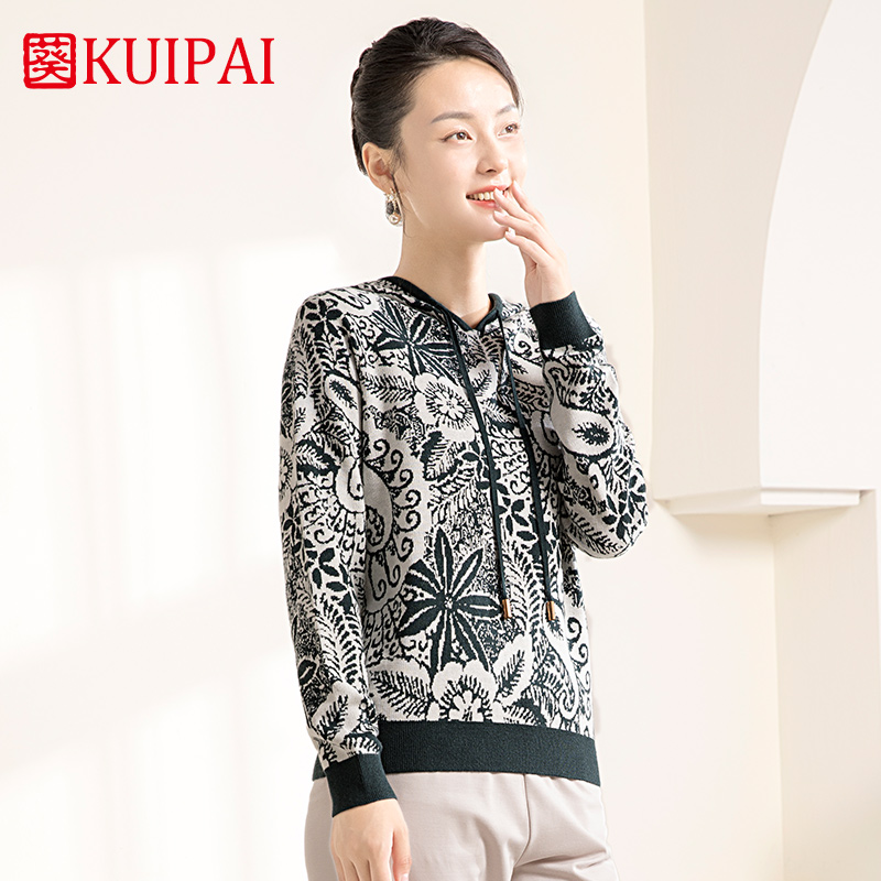 中年妈妈装 针织衫 长袖 国风花卉图案时尚 百搭毛衣 毛衫 葵牌秋季