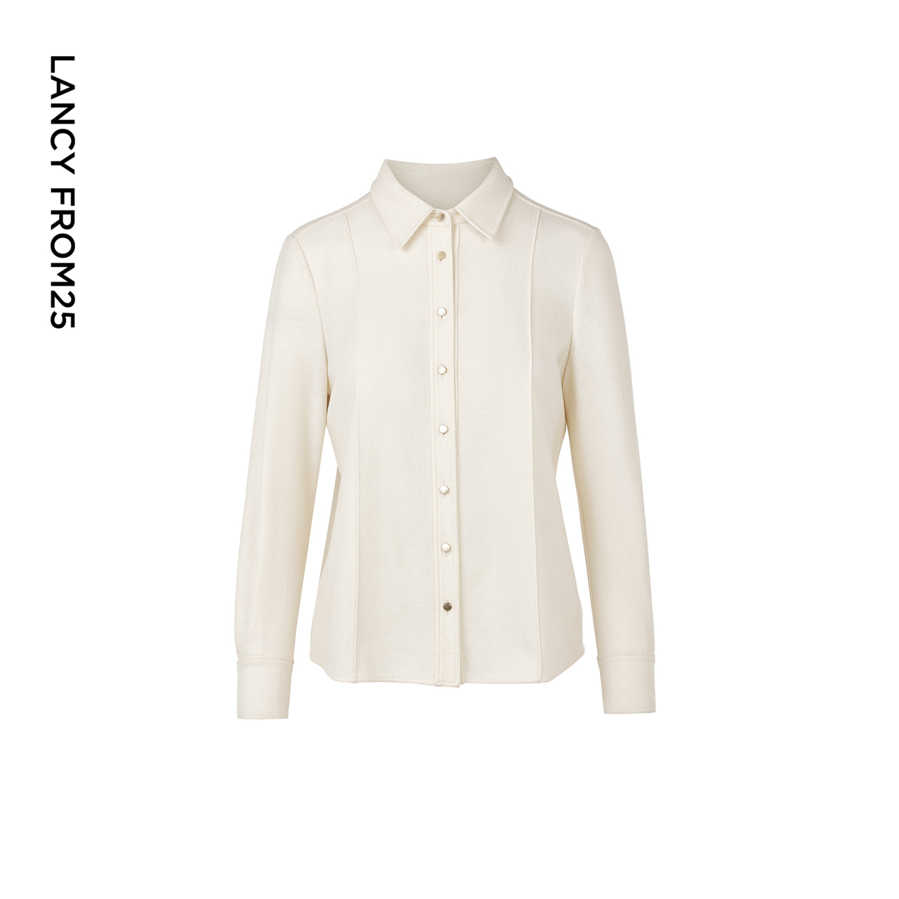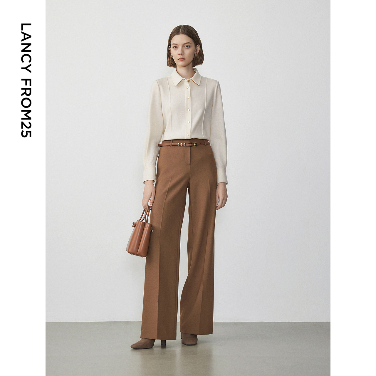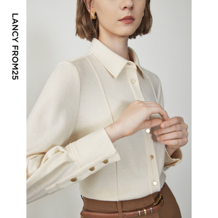 新款 冬季 气质衬衣上衣高级感女 长袖 朗姿纯羊毛通勤休闲ol内搭衬衫