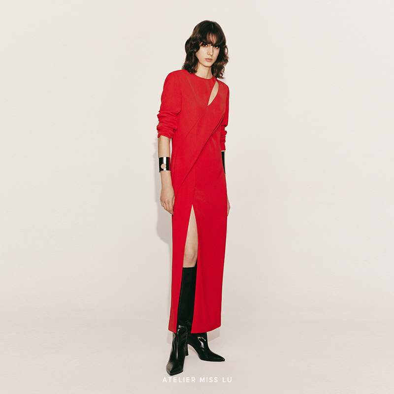 AtelierMissLu 几何镂空设计高开衩直身长裙 暮日