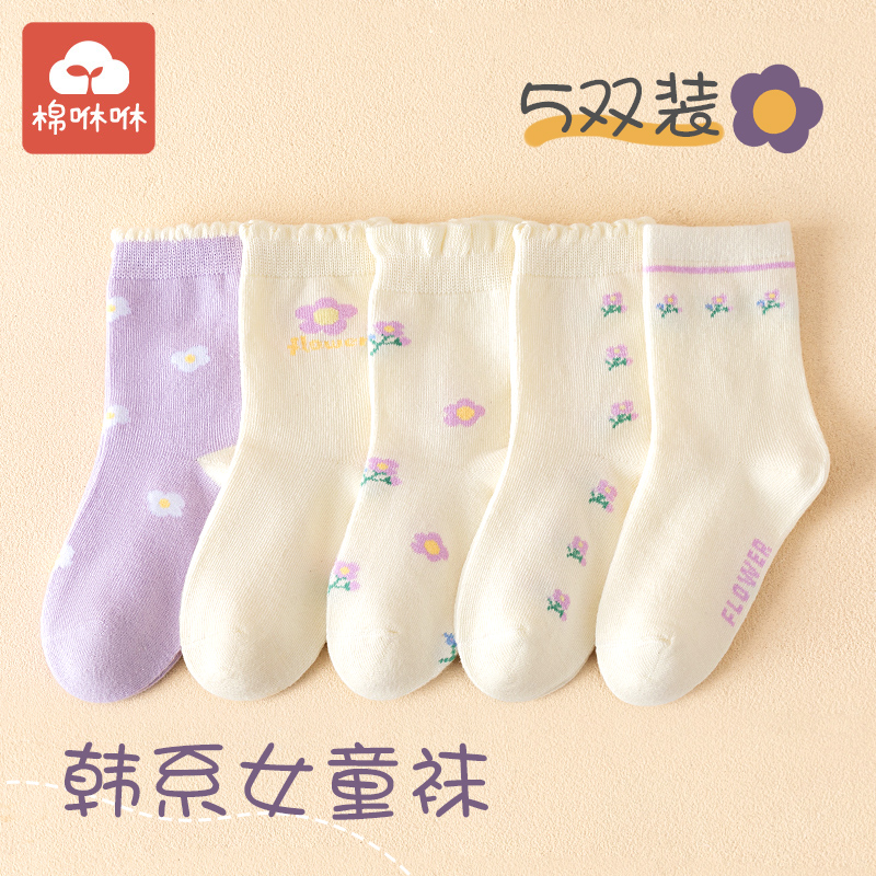 儿童袜子女童秋款 纯棉花边中筒袜小女孩秋冬韩系童袜宝宝无骨棉袜