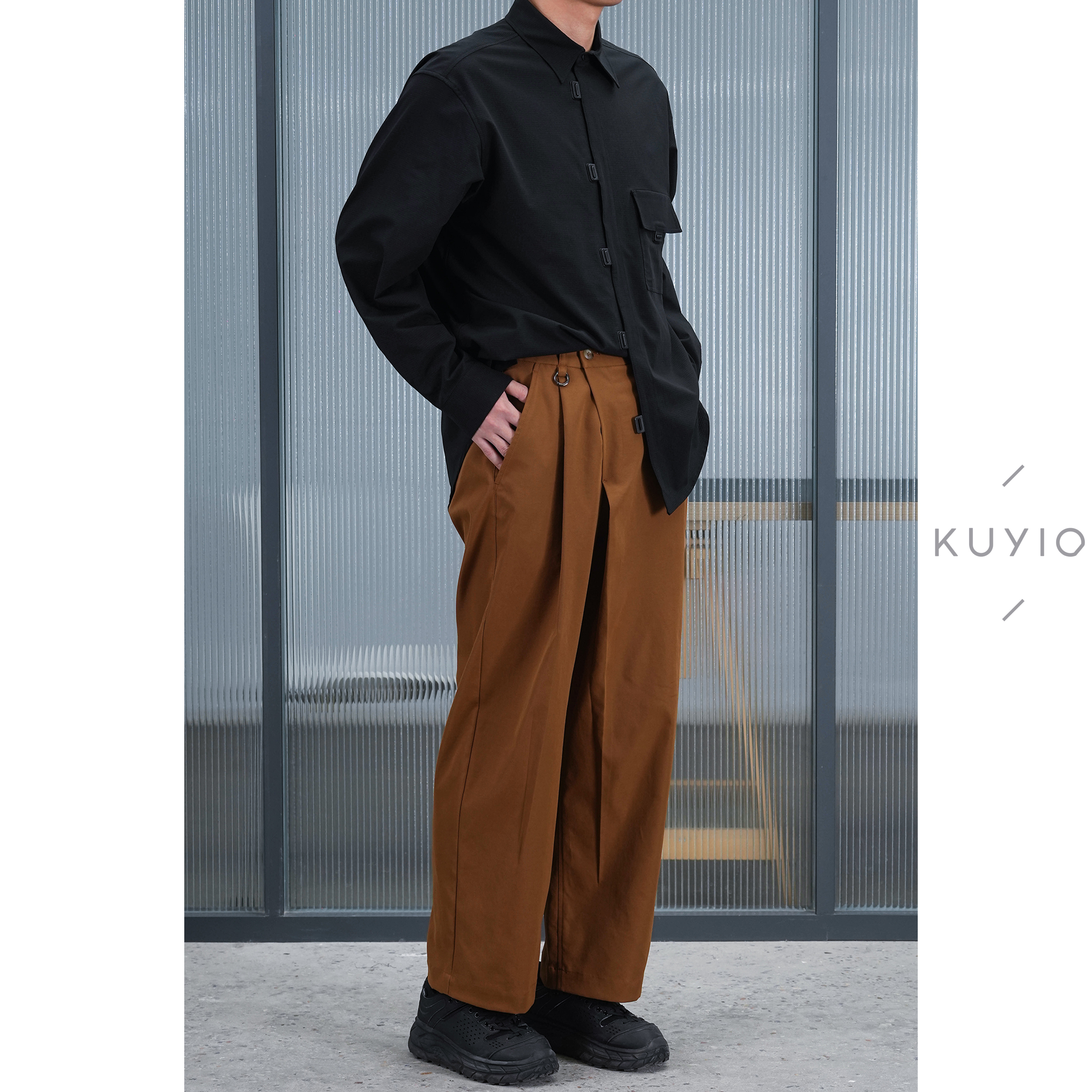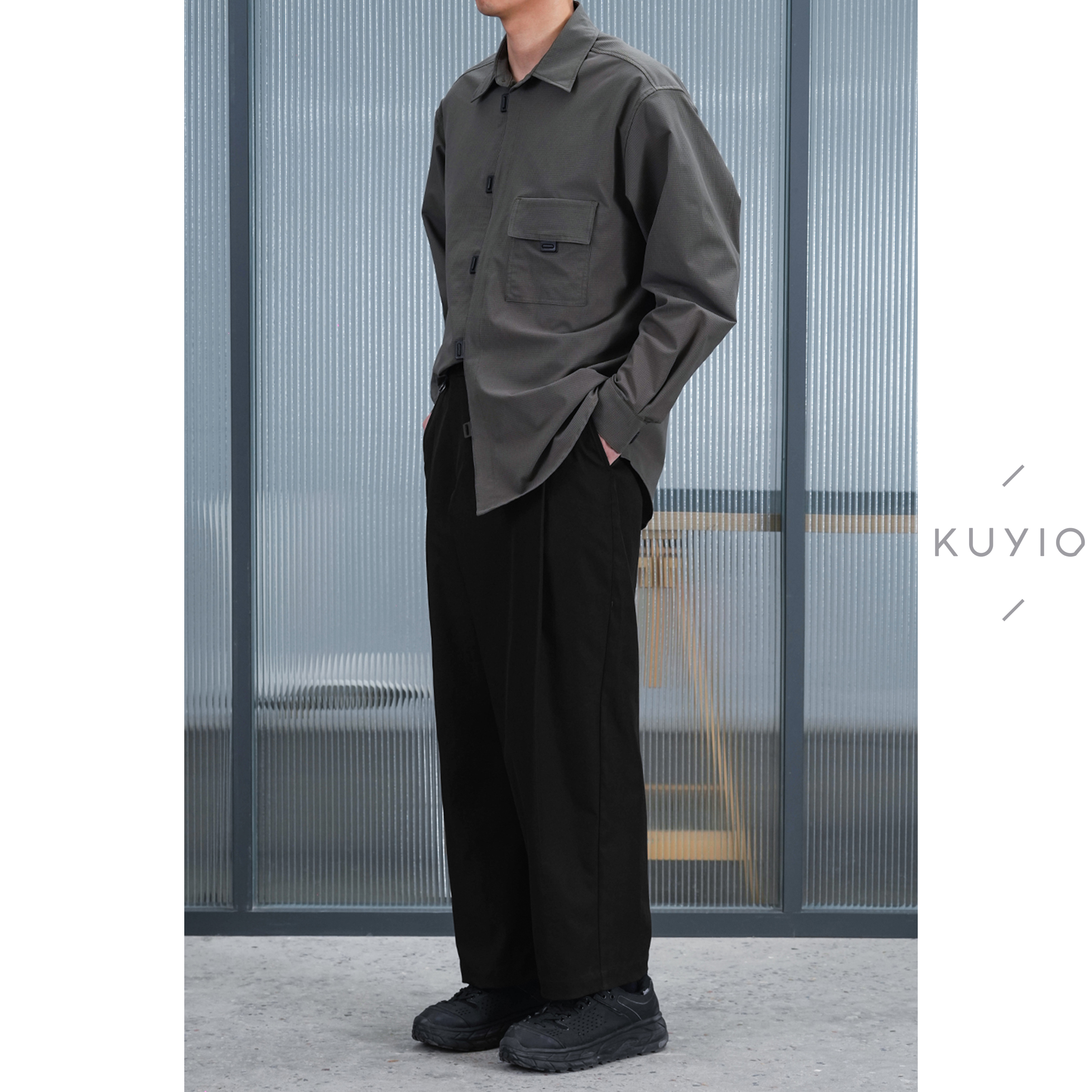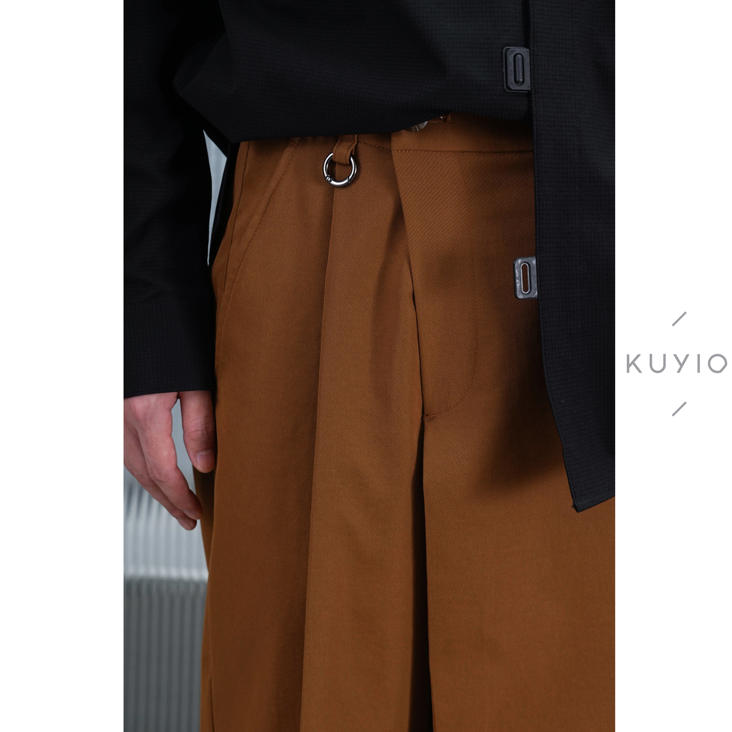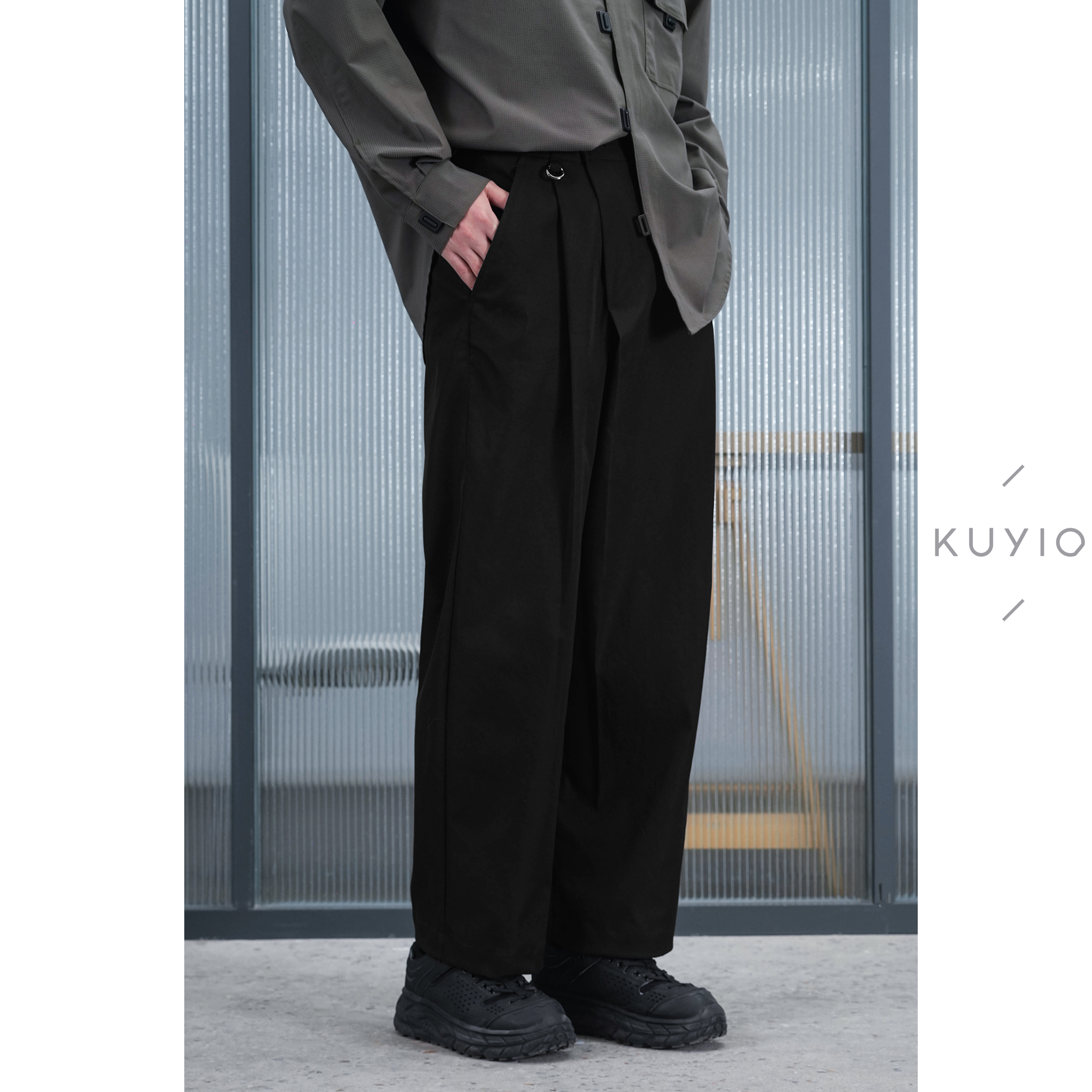 长裤 不对称斜门襟后松紧腰宽松西装 男 日本JIN口面料 KUYIOU
