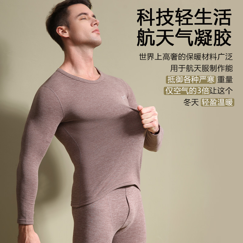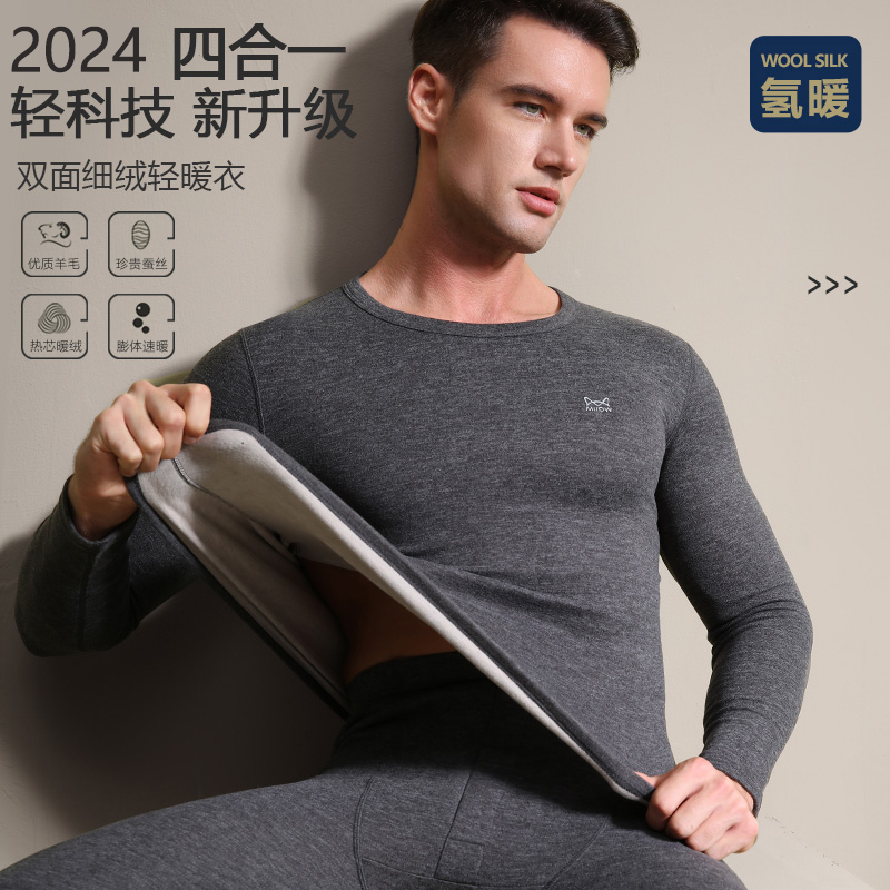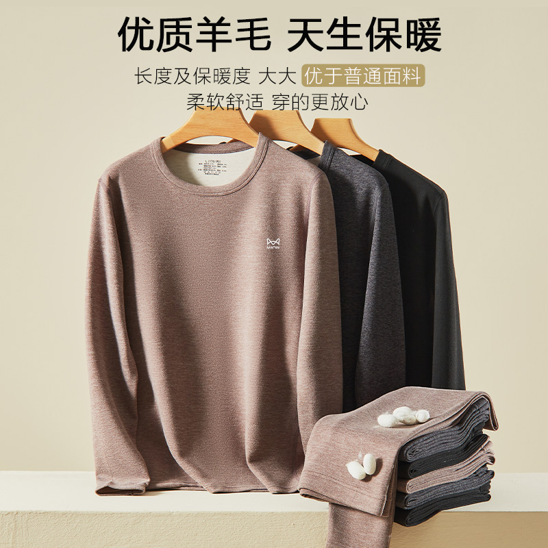 中老年人打底发热秋衣秋裤 加厚加绒德秋冬季 套装 猫人保暖内衣男士