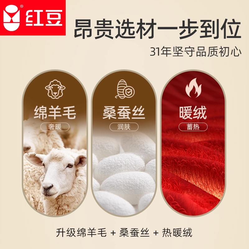 红豆女士羊毛蚕丝保暖内衣加绒加厚中老年人秋衣秋裤 冬打底男 套装