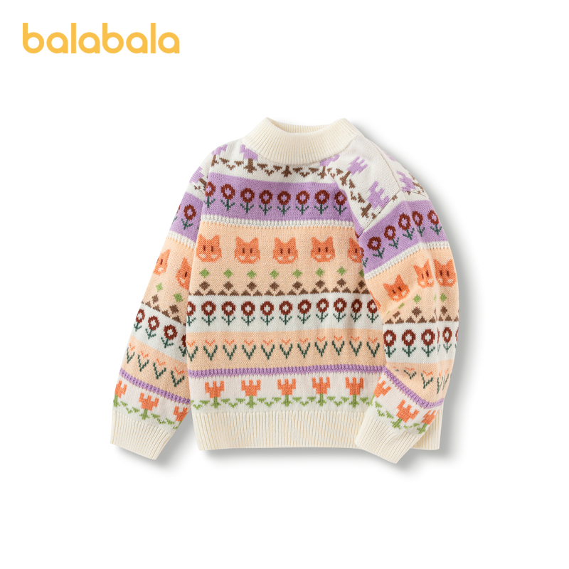 秋冬毛衣保暖高领打底衫 女童洋气提花针织衫 儿童毛衫 巴拉巴拉童装