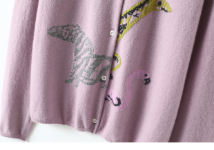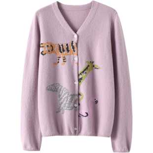 外套秋冬 女纯羊绒毛衣针织开衫 宝藏设计 动物提花V领山羊绒开衫