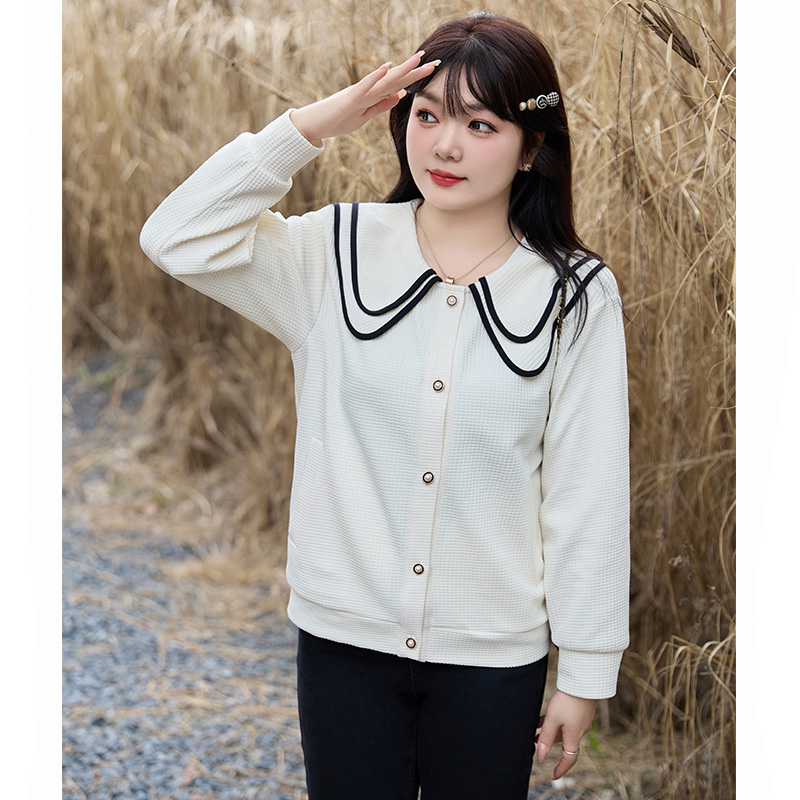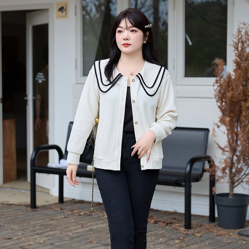 风衣秋款 常规OL通勤撞色短款 加肥洋气短外套 韩版 胖女孩微胖特大码