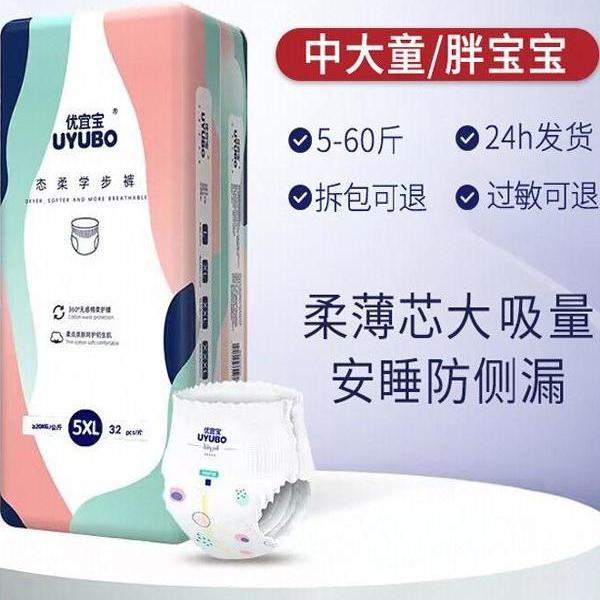 5XL婴儿尿不湿超柔超薄透气干爽拉拉裤 优宜宝胖宝宝纸尿裤 L超大码