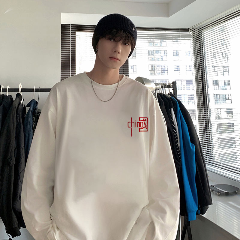 宽松潮牌ins宽松内搭潮流百搭加绒上衣 秋冬打底衫 纯棉长袖 t恤男士