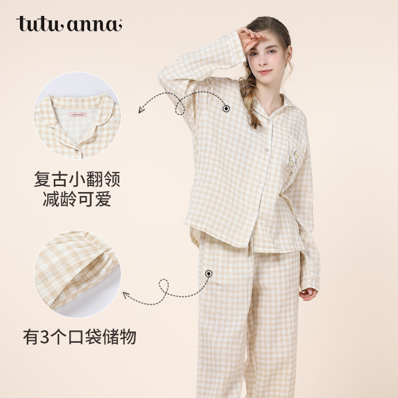 家居服女款 纯棉长袖 夏季 薄款 家乐芬睡衣女士春秋款 空调服套装 秋季