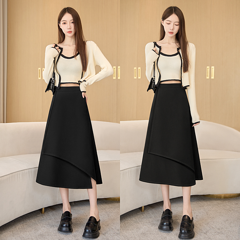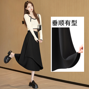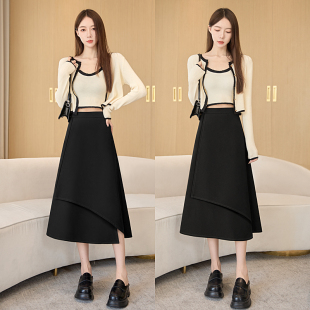 高腰梨型身材A字裙伞裙 半身裙百褶裙大码 胖mm显瘦百搭西装 中长款