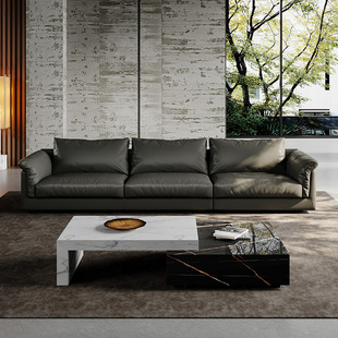 法莎蒂意式 极简皮艺直排棉花糖沙发 极简拉扣真皮沙发小户型意式