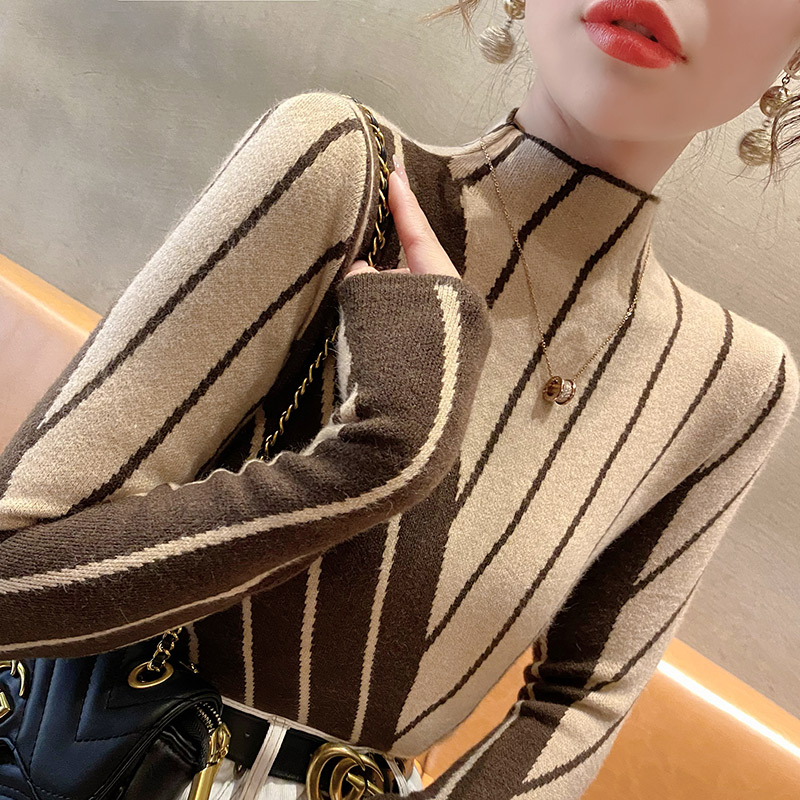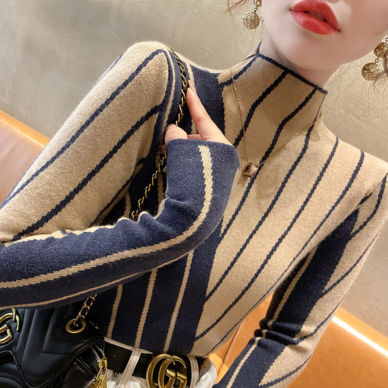 洋气中领针织衫 条纹半高领毛衣女打底衫 爆款 新款 内搭 春秋2025秋装