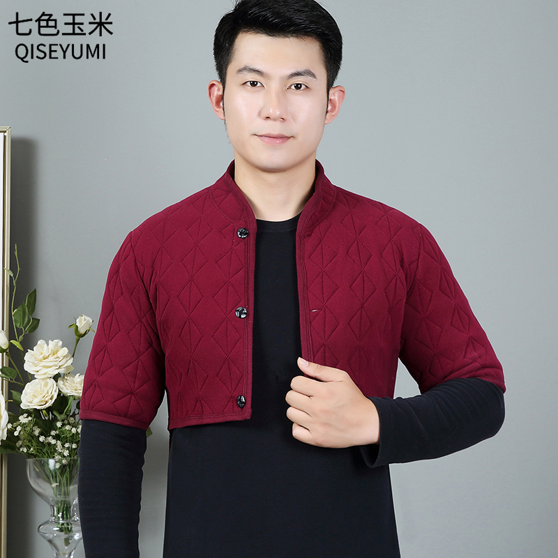 加厚保暖护肩膀坎肩短款 冬季 马夹 护肩加绒马甲爸爸装 中老年男中袖