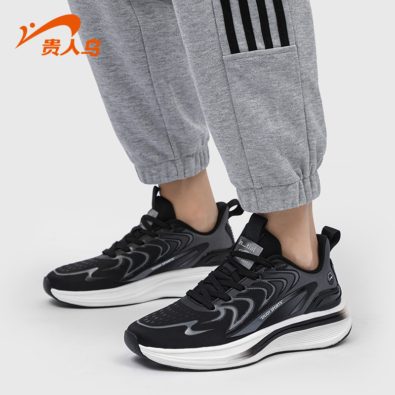 黑色软底运动鞋 子新款 2025秋季 男士 贵人鸟跑步鞋 轻便减震跑鞋 男鞋