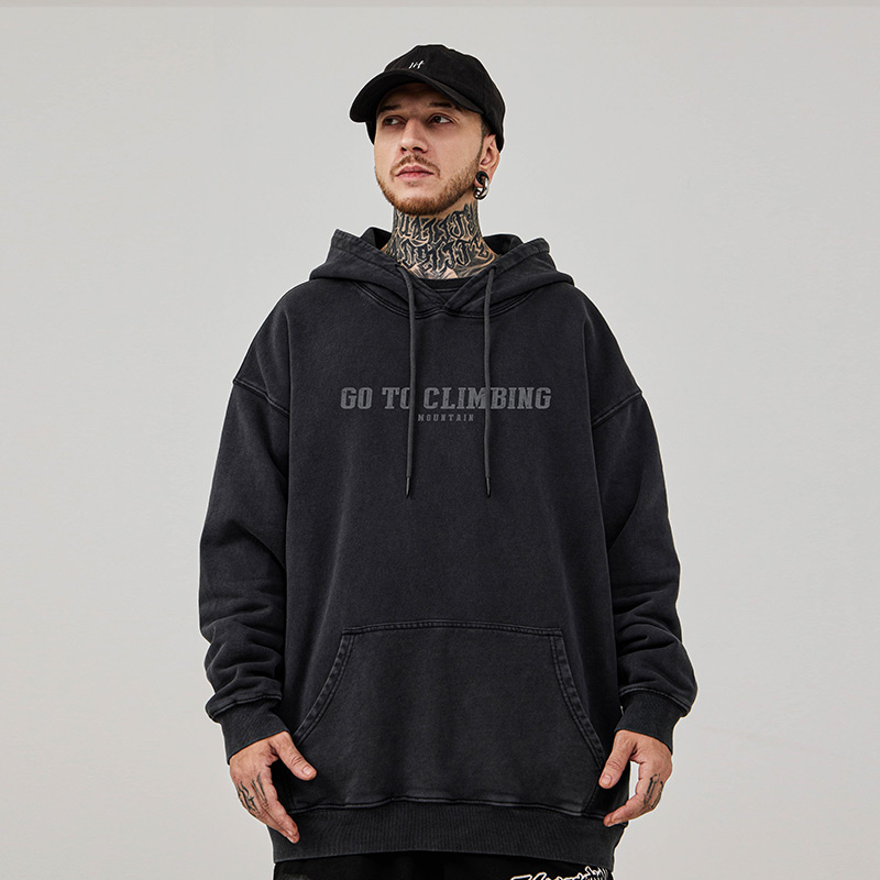 潮流宽松水洗做旧卫衣春秋款 重磅复古胖子男装 圆领美式 加肥加大码