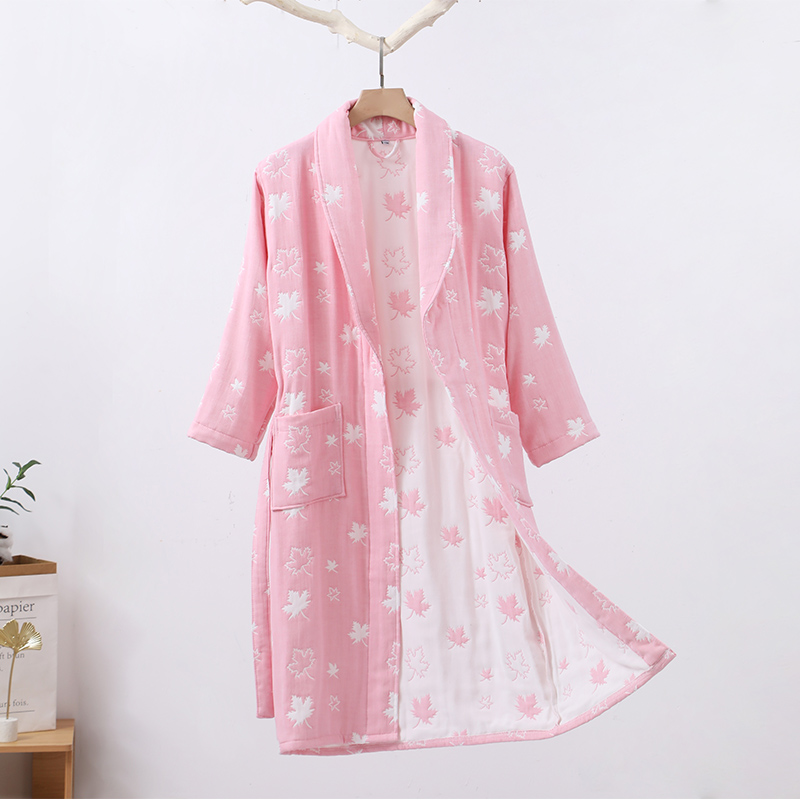 咪咕尚新款 酒店浴衣纱布睡袍吸水 女士浴袍六层棉纱秋冬加厚长款