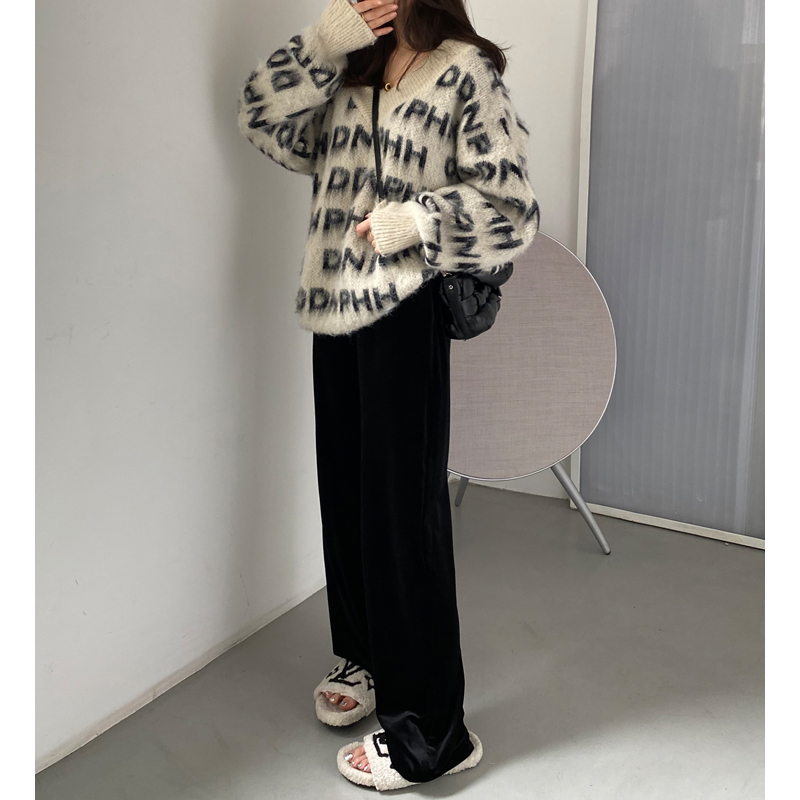 直筒拖地长裤 黑色金丝绒阔腿裤 窄版 垂坠感休闲裤 子 女高腰秋冬新款