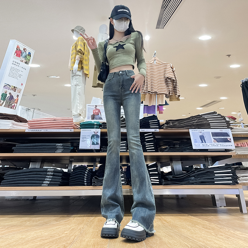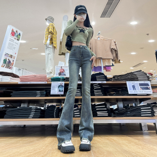 Sixty2025春秋牛仔裤 广角裤 女高腰修身 微喇叭裤 复古洗水 窄版 Miss